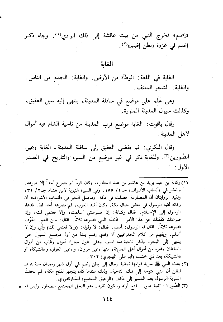 وقال ياقوت: الغابة موضع قرب المدينة من ناحية الشام فيه أموال لأهل المدينة.