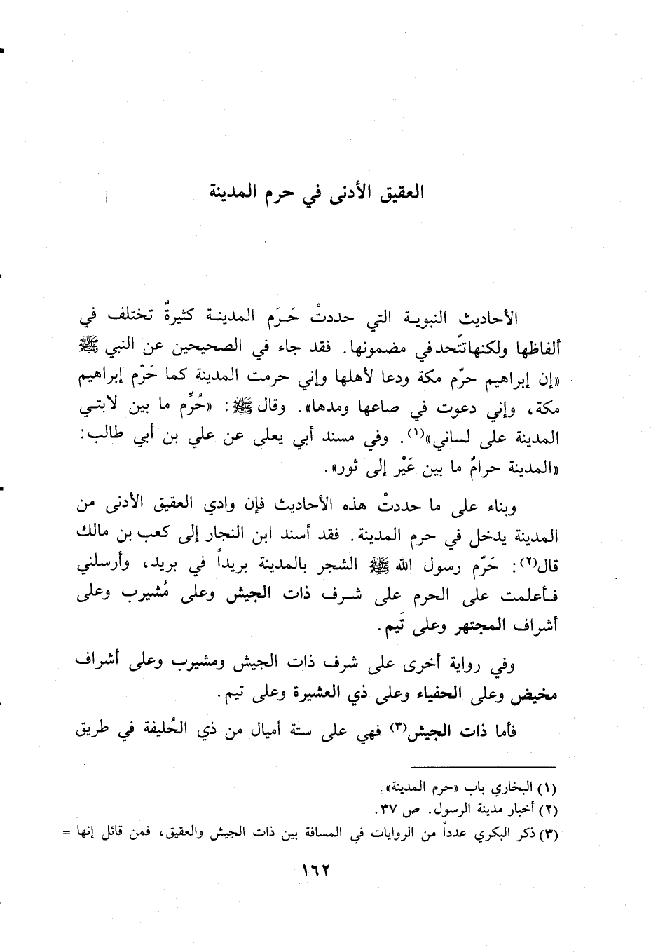 فقد أسند ابن النجار إلى كعب بن مالك قال (2): حرّم رسول الله صلى الله عليه وسلم الشجر بالمدينة بريداً في بريد، وأرسلني فأعلمت على الحرم على شرف ذات الجيش و على مشيرب وعلى أشراف المجتهر وعلى تيم.