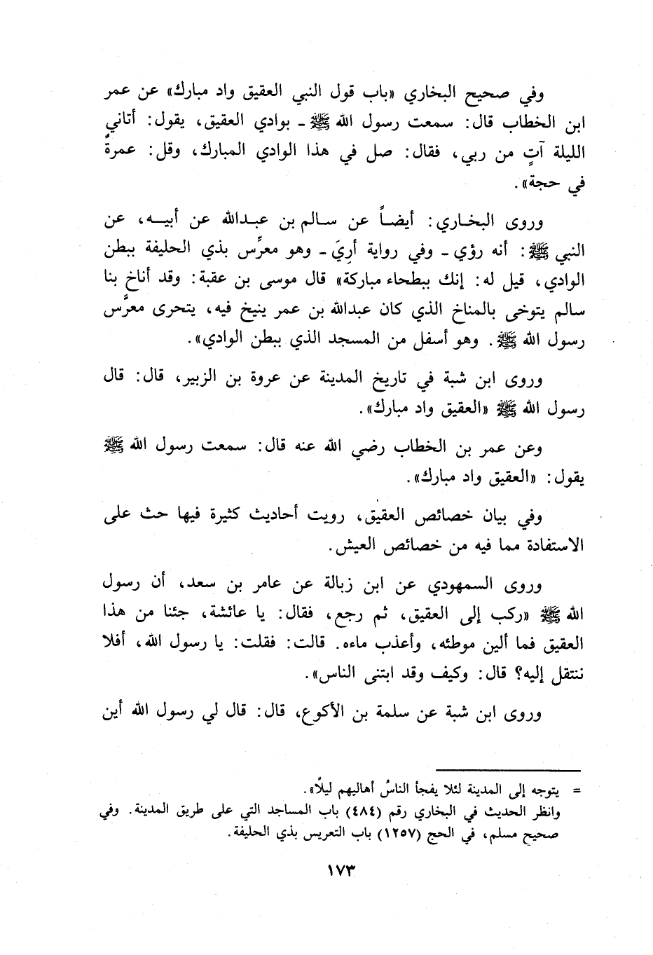 وفي صحيح البخاري ((باب قول النبي العقيق واد مبارك)) عن عمر ابن الخطاب قال: سمعت رسول الله صلى الله عليه وسلم _ بوادي العقيق، يقول: أتاني الليلة آت من ربي، فقال: صل في هذا الوادي المبارك، وقل: عمرة في حجة)).