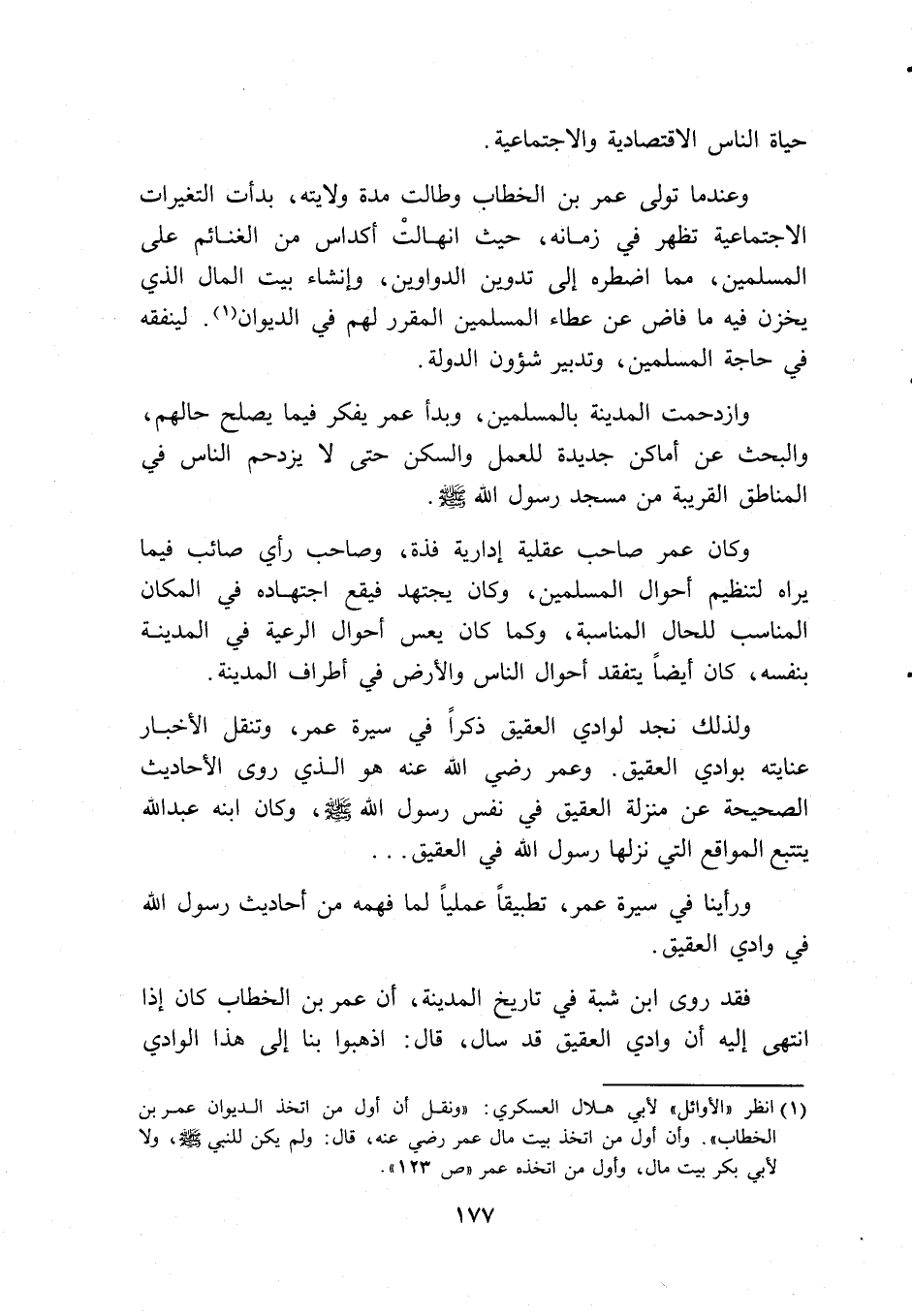 (1) انظر ((الأوائل)) لأبي هلال العسكري: ((ونقل أن أول من اتخذ الديوان عمر بن الخطاب)). وأن أول من اتخذ بيت مال عمر رضي عنه، قال: ولم يكن للنبي صلى الله عليه وسلم، ولا لأبي بكر بيت مال، وأول من اتخذه عمر ((ص123)).