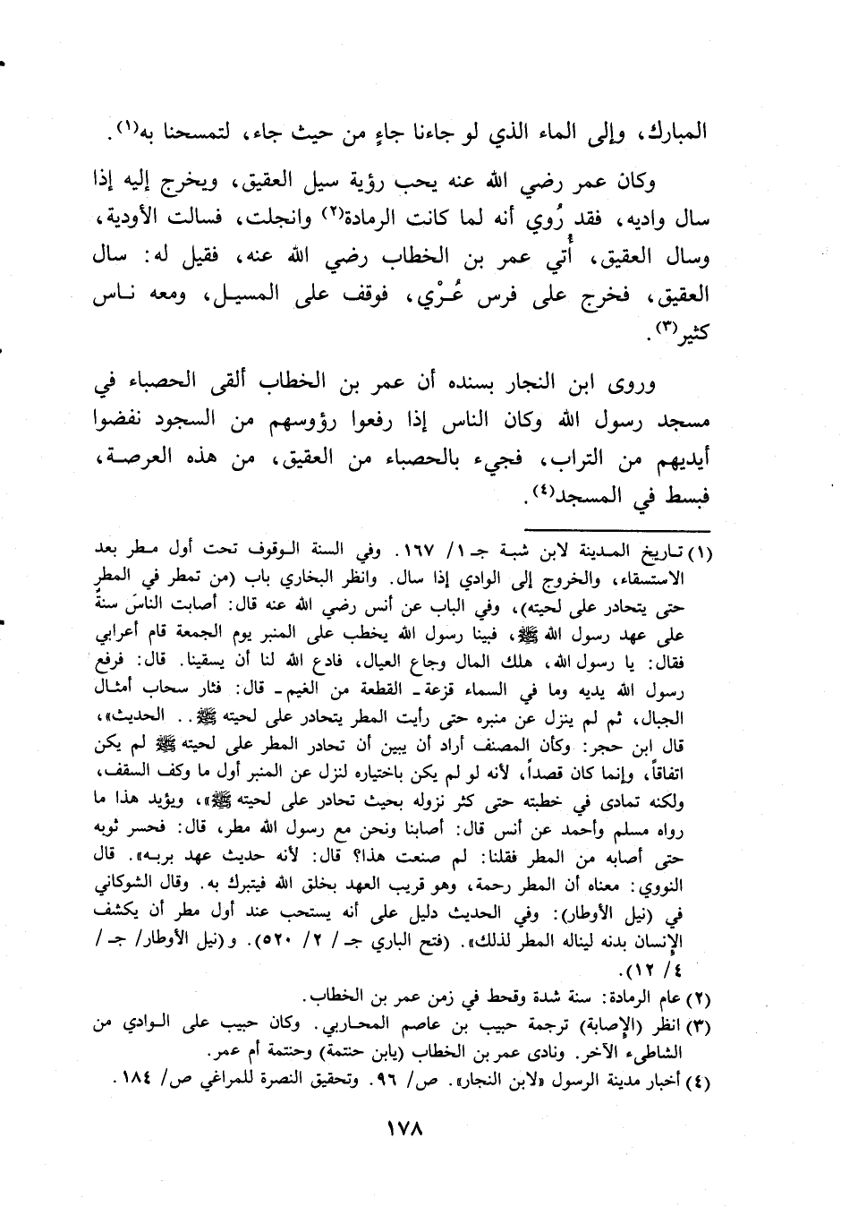 (1) تاريخ المدينة لابن شبة جـ 167/ 1. وفي السنة الوقوف تحت أول مطر بعد الاستسقاء، والخروج إلى الوادي إذا سال.