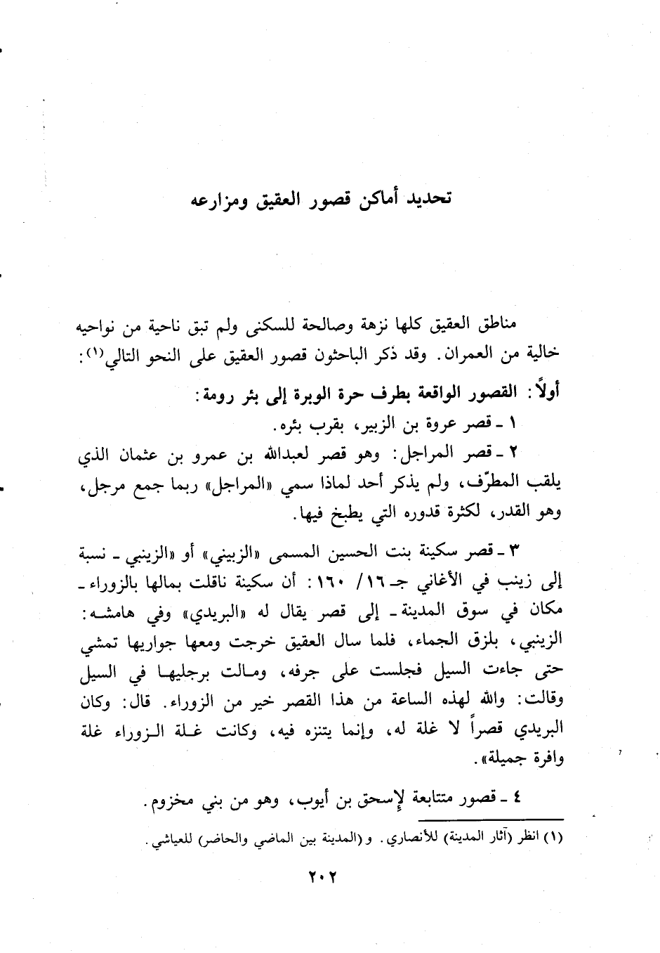 (1) انظر (آثار المدينة) للأنصاري. و (المدينة بين الماضي و الحاضر) للعياشي.