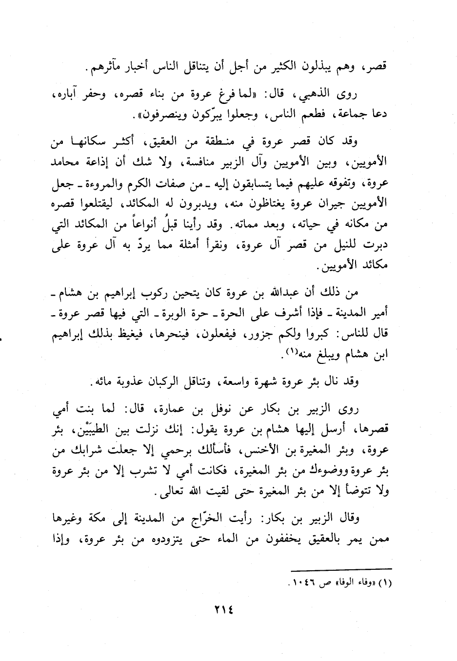 وقال الزبير بن بكار: رأيت الخّراج من المدينة إلى مكة وغيرها ممن يمر بالعقيق يخففون من الماء حتى يتزودوه من بئر عروة، وإذا ...