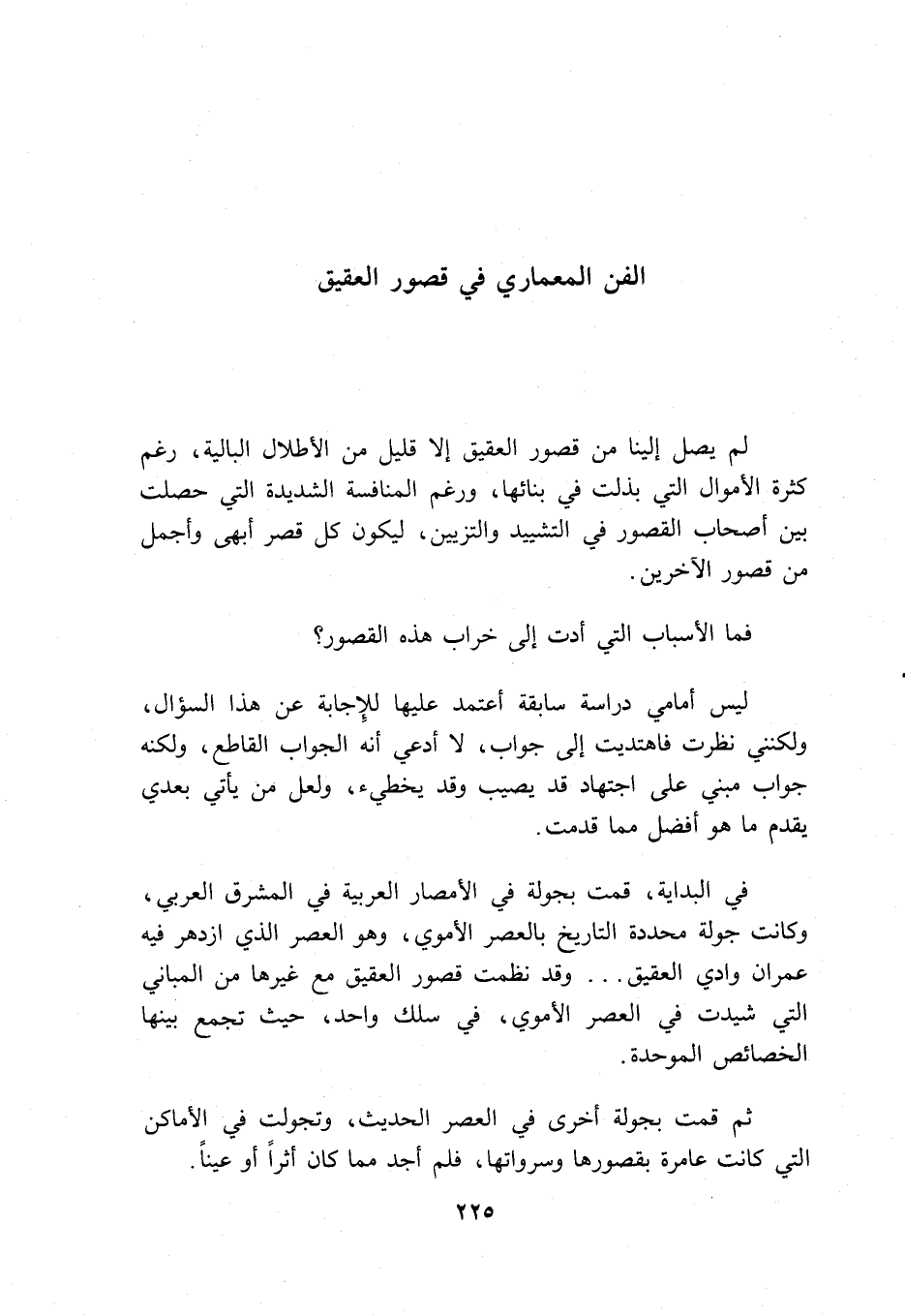 في البداية، قمت بجولة في الأمصار العربية في المشرق العربي، وكانت جولة محددة التاريخ بالعصر الأموي، وهو العصر الذي ازدهر فيه عمران وادي العقيق ...
