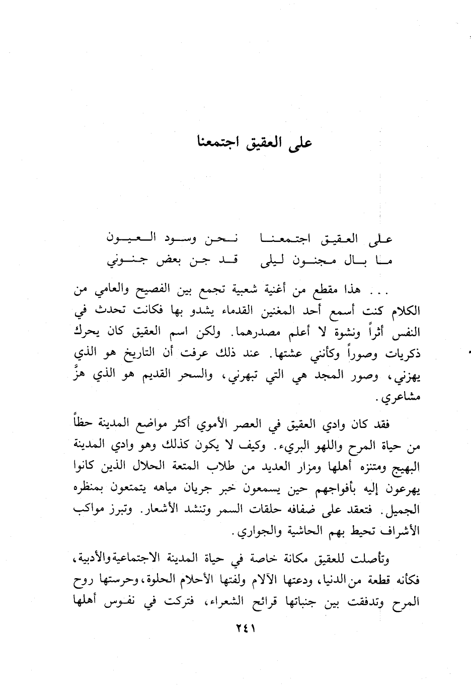 ولكن اسم العقيق كان يحرك ذكريات وصوراً وكأنني عشتها.