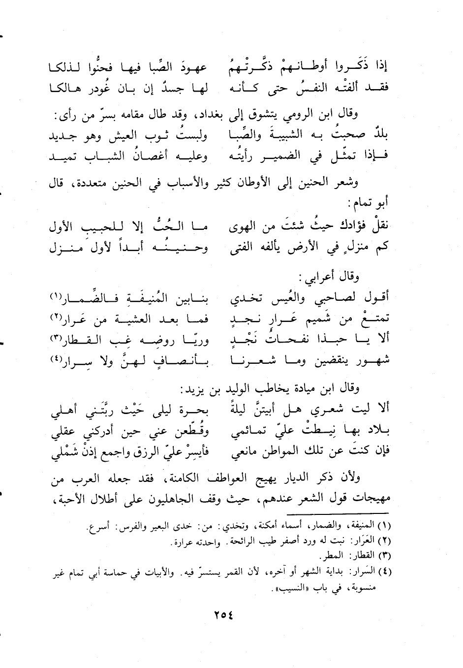 وشعر الحنين إلى الأوطان كثير و الأسباب في الحنين متعددة، قال أبو تمام: