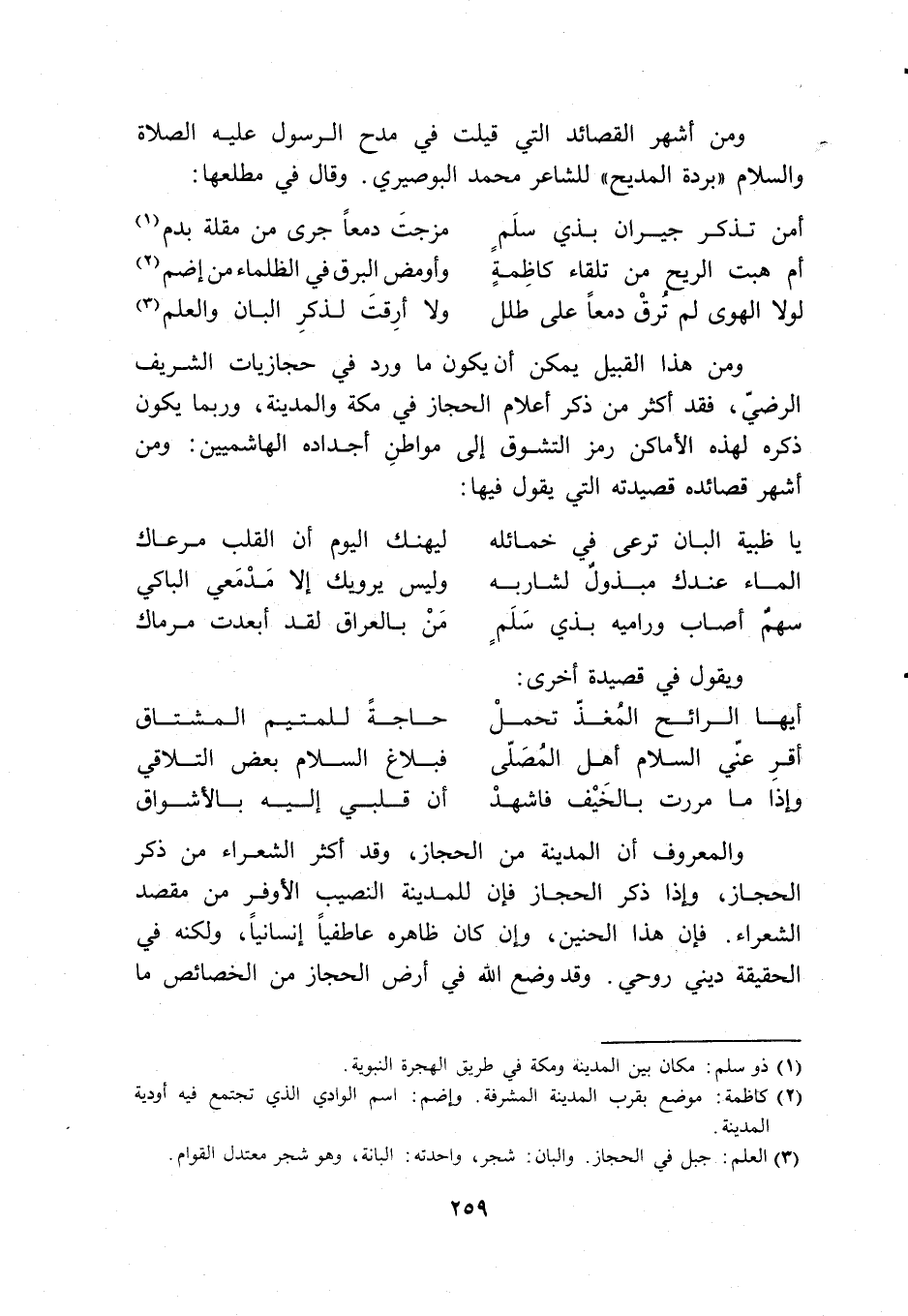 فإن هذا الحنين، وإن كان ظاهره عاطفياً إنسانياً، ولكنه في الحقيقة ديني روحي. وقد وضع الله في أرض الحجاز من الخصائص ما ...
