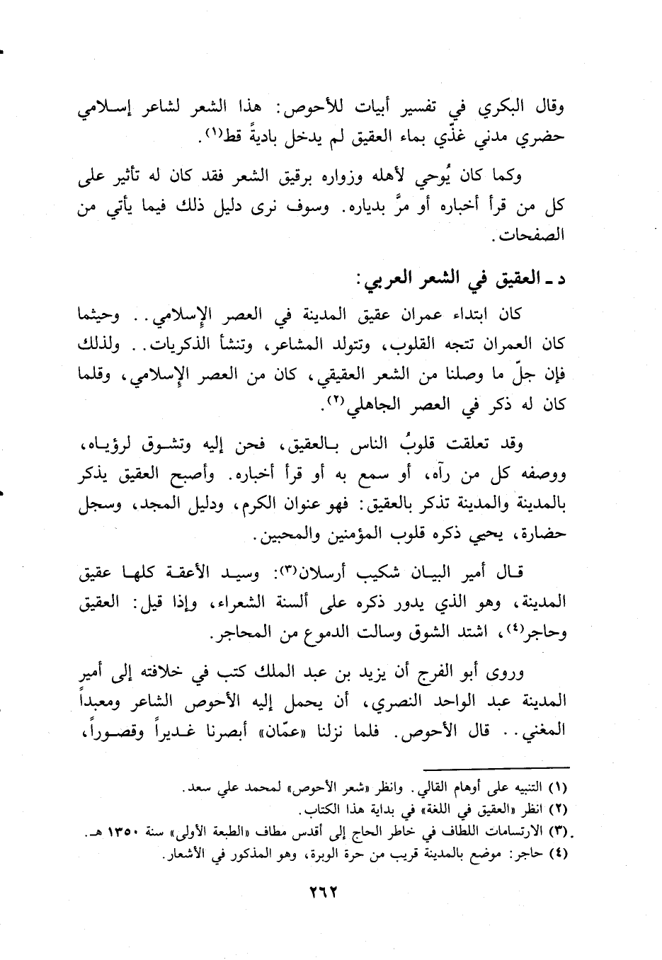 قال أمير البيان شكيب أرسلان (3): وسيد الأعقة كلها عقيق المدينة، وهو الذي يدور ذكره على ألسنة الشعراء، وإذا قيل: العقيق وحاجر (4)، اشتد الشوق وسالت الدموع من المحاجر.