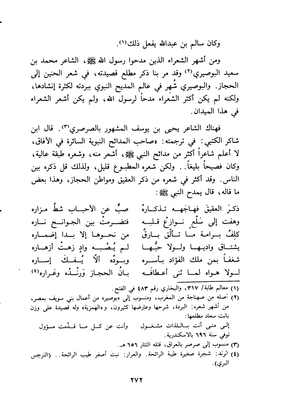 (2) أصله من صهناجة من المغرب، ومنسوب إلى ((بوصير)) من أعمال بني سويف بمصر، من أشهر شعره: البردة، شرحها وعارضها كثيرون، و ((الهمزية)) وله قصيدة على وزن بانت سعاد مطلعها: إلى متى باللذات مشغول وأنت عن كل ما قدمت مسؤول توفي سنة 696 بالأسكندرية.