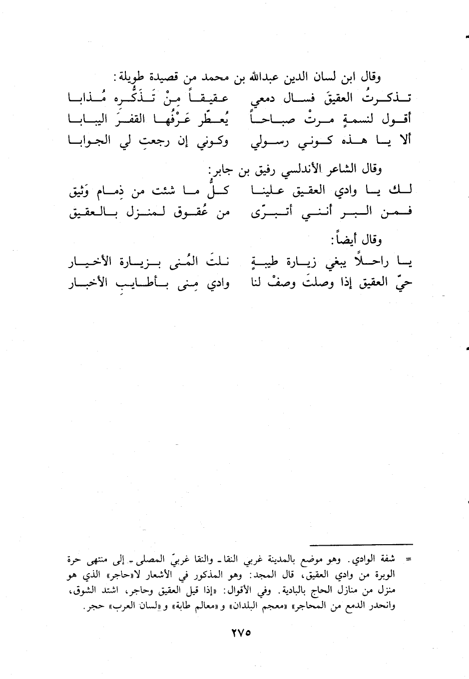لك يا وادي العقيق علينا كل ما شئت من ذمام وثيق