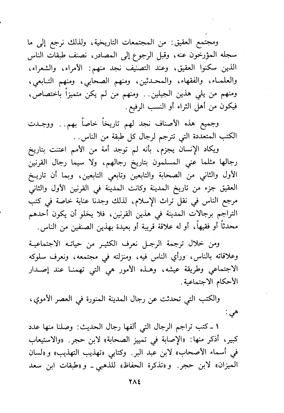 وجميع هذه الأصناف نجد لهم تاريخاً خاصاً بهم .. ووجدت الكتب المتعددة التي تترجم لرجال كل طبقة من الناس .. ويكاد الإنسان يجزم، بأنه لم توجد أمة من الأمم أعتنت بتاريخ رجالها مثلما عني المسلمون بتاريخ رجالهم، ولاسيما رجال القرنين الأول والثاني من الصحابة والتابعين وتابعي التابعين، وبما أن تاريخ العقيق جزء من تاريخ المدينة وكانت المدينة في القرنين الأول والثاني مرجع الناس في نقل تراث الإسلام، لذلك وجدنا عناية خاصة في كتب التراجم برجالات المدينة في هذين القرنين، فلا يخلو أن يكون أحدهم محدثاً أو فقيهاً، أو له علاقة قريبة أو بعيدة بهذين الصنفين من الناس.