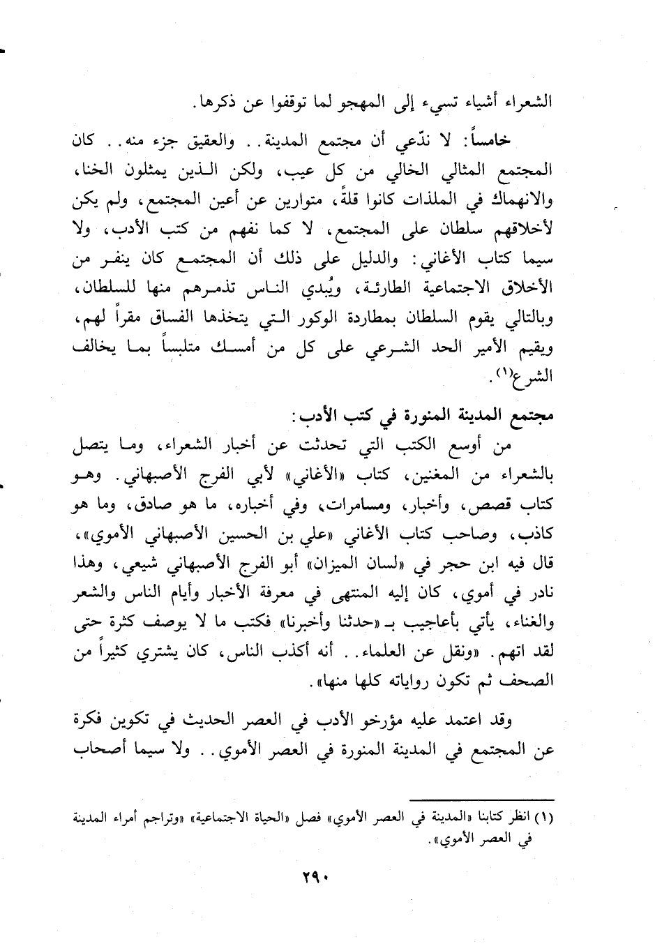 وقد اعتمد عليه مؤرخو الأدب في العصر الحديث في تكوين فكرة عن المجتمع في المدينة المنورة في العصر الأموي .. ولا سيما أصحاب ...