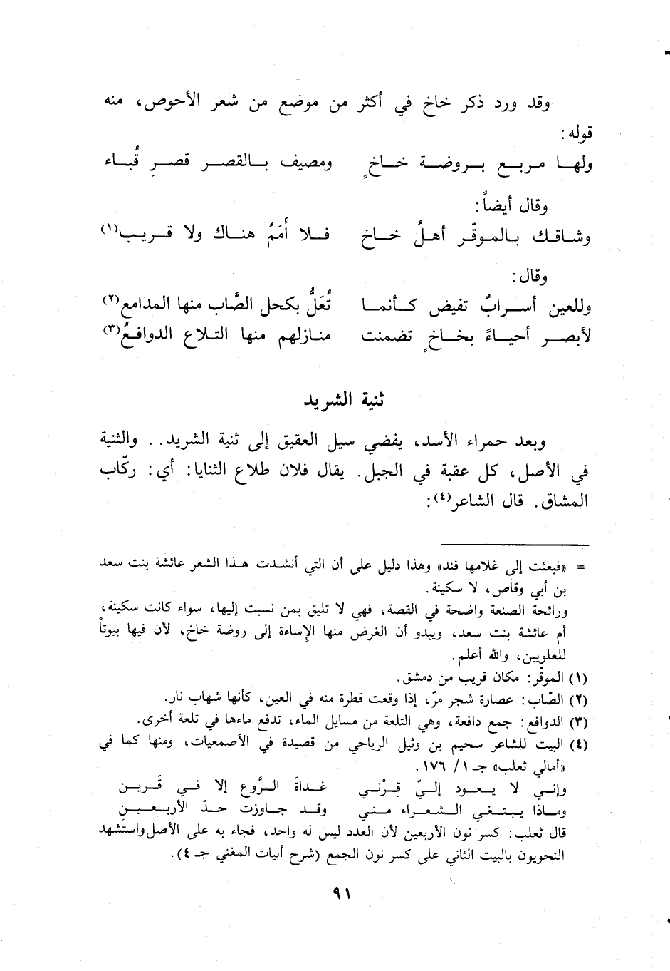 = ((فبعثت إلى غلامها فند)) وهذا دليل على أن التي أنشدت هذا الشعر عائشة بنت سعد بن أبي وقاص، لا سكينة.