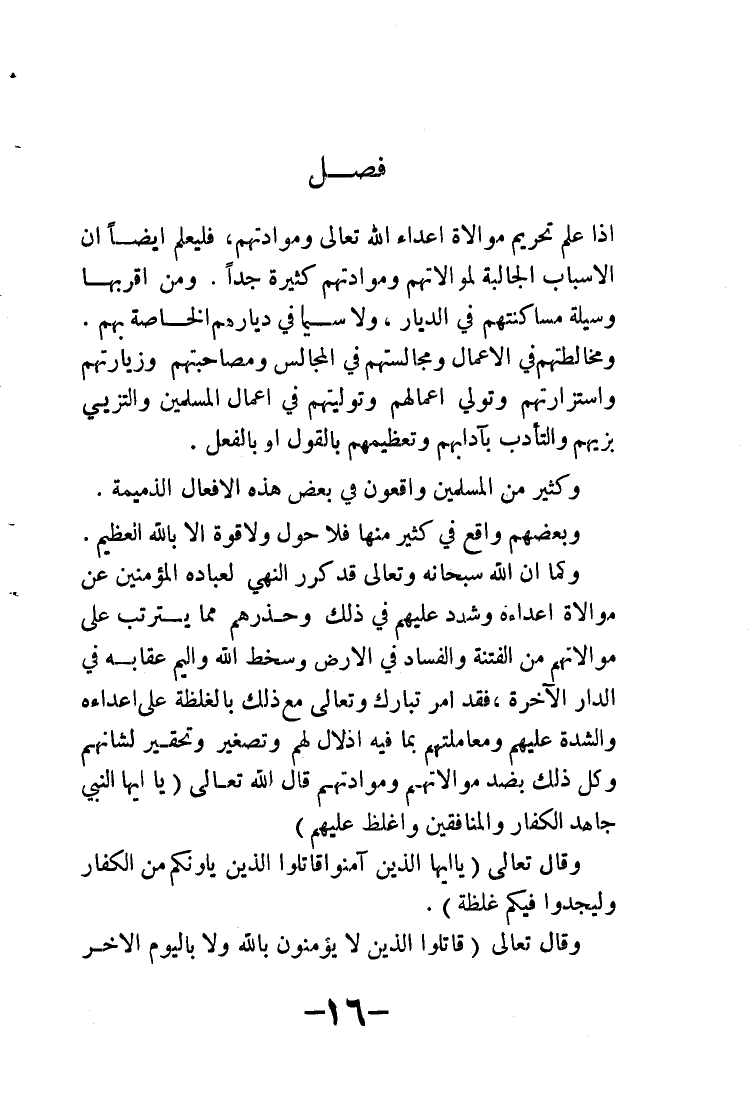 وكما أن الله سبحانه وتعالى قد كرر النهي لعباده المؤمنين عن موالاة أعدائه وشدد عليهم في ذلك وحذرهم مما يترتب على موالاتهم من الفتنة والفساد في الأرض وسخط الله وأليم عقابه في الدار الآخرة، فقد أمر تبارك وتعالى مع ذلك بالغلظة على أعدائه والشدة عليهم ومعاملتهم بما فيه إذلال لهم وتصغير وتحقير لشأنهم وكل ذلك بضد موالاتهم وموادتهم قال الله تعالى: {ياأيها النبي جاهد الكفار والمنافقين واغلظ عليهم} وقال تعالى: {يا أيها الذين آمنوا قاتلوا الذين يلونكم من الكفار وليجدوا فيكم غلظة} وقال تعالى: {قاتلوا الذين لا يؤمنون بالله ولا باليوم الآخر