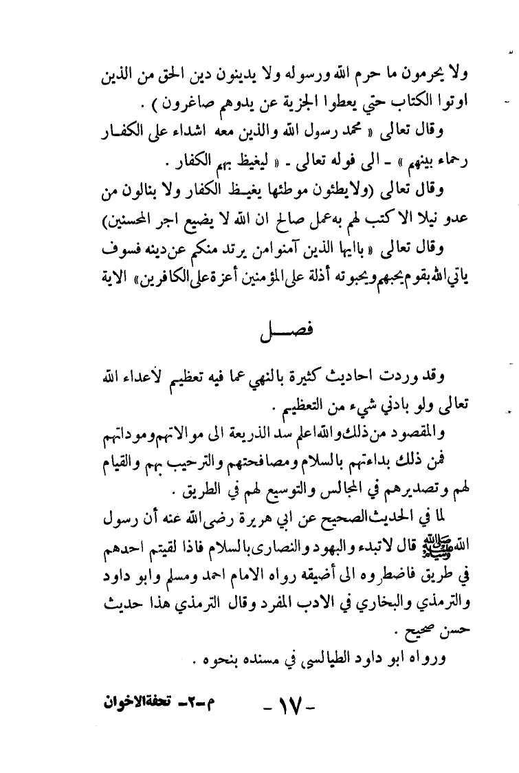 كتاب تحفة الإخوان بما جاء في الموالاة والمعاداة والحب والبغض والهجران