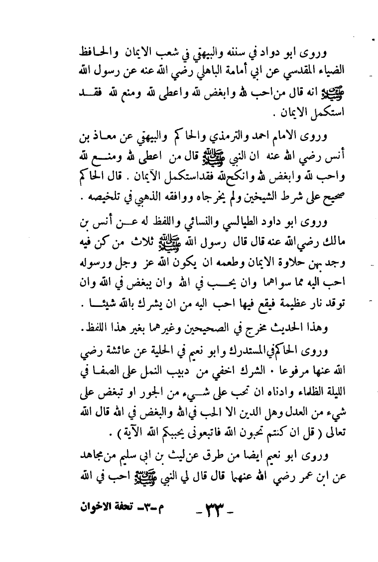 كتاب تحفة الإخوان بما جاء في الموالاة والمعاداة والحب والبغض والهجران