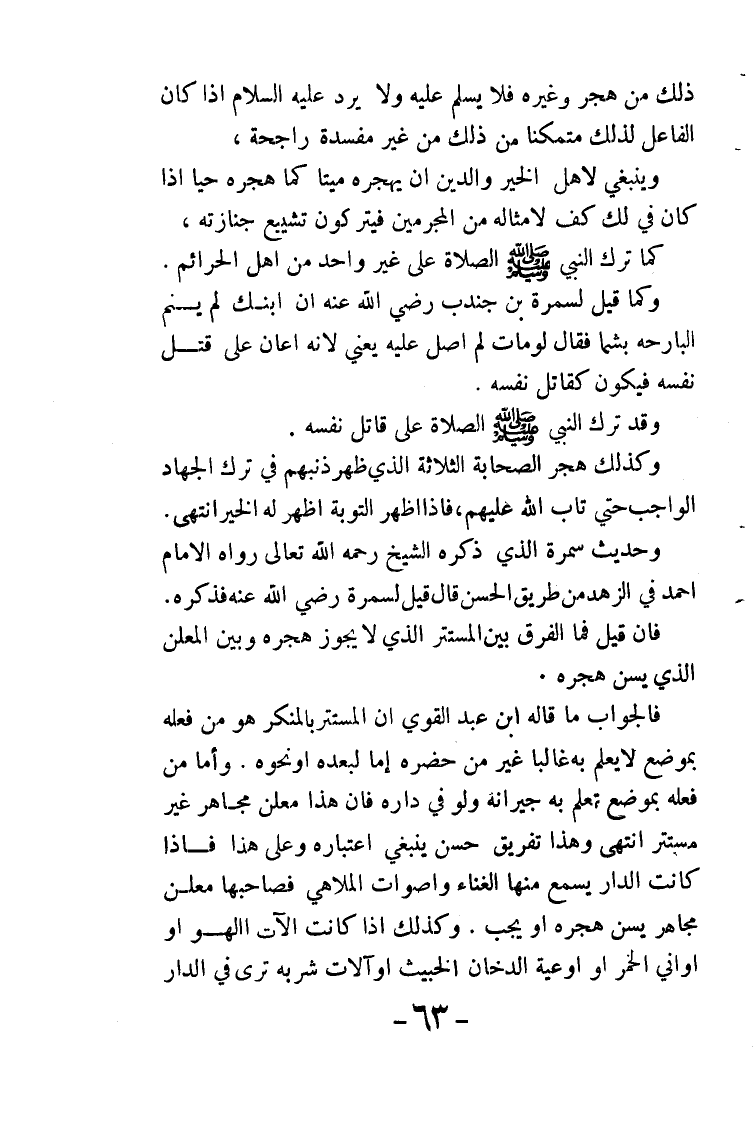 وحديث سمرة الذي ذكره الشيخ رحمه الله تعالى رواه الإمام أحمد في الزهد من طريق الحسن قال: قيل لسمرة رضي الله عنه فذكره، فإن قيل فما الفرق بين المستتر الذي لا يجوز هجره وبين المعلن الذي يسن هجره؟.