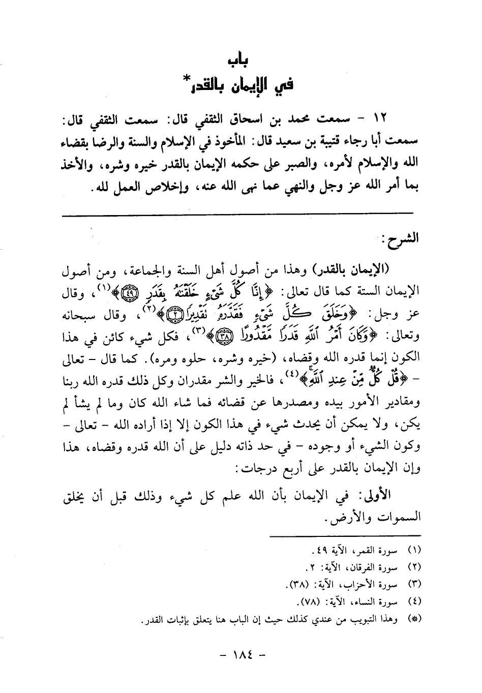 1 وهذا التبويب من عندي كذلك حيث إن الباب هنا يتعلق بإثبات القدر.