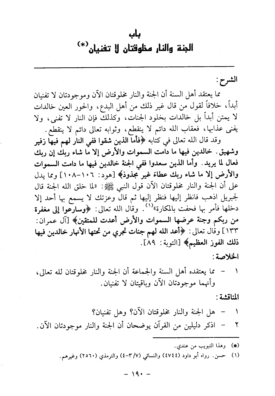 باب الجنة والنار مخلوقتان لا تفنيان1