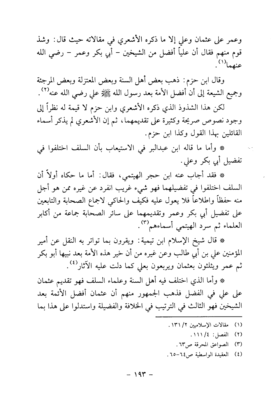 *قال شيخ الإسلام ابن تيمية: ويقرون بما تواتر به النقل عن أمير المؤمنين علي بن أبي طالب وعن غيره من أن خير هذه الأمة بعد نبيها أبو بكر ثم عمر ويثلثون بعثمان ويربعون بعلي كما دلت عليه الآثار4.