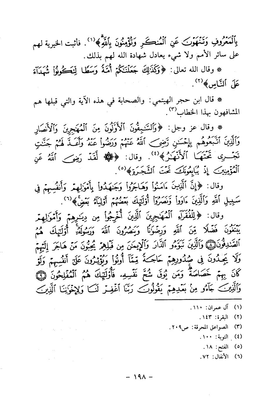 * قال ابن حجر الهيتمي: والصحابة في هذه الآية والتي قبلها هم المشافهون بهذا الخطاب3.