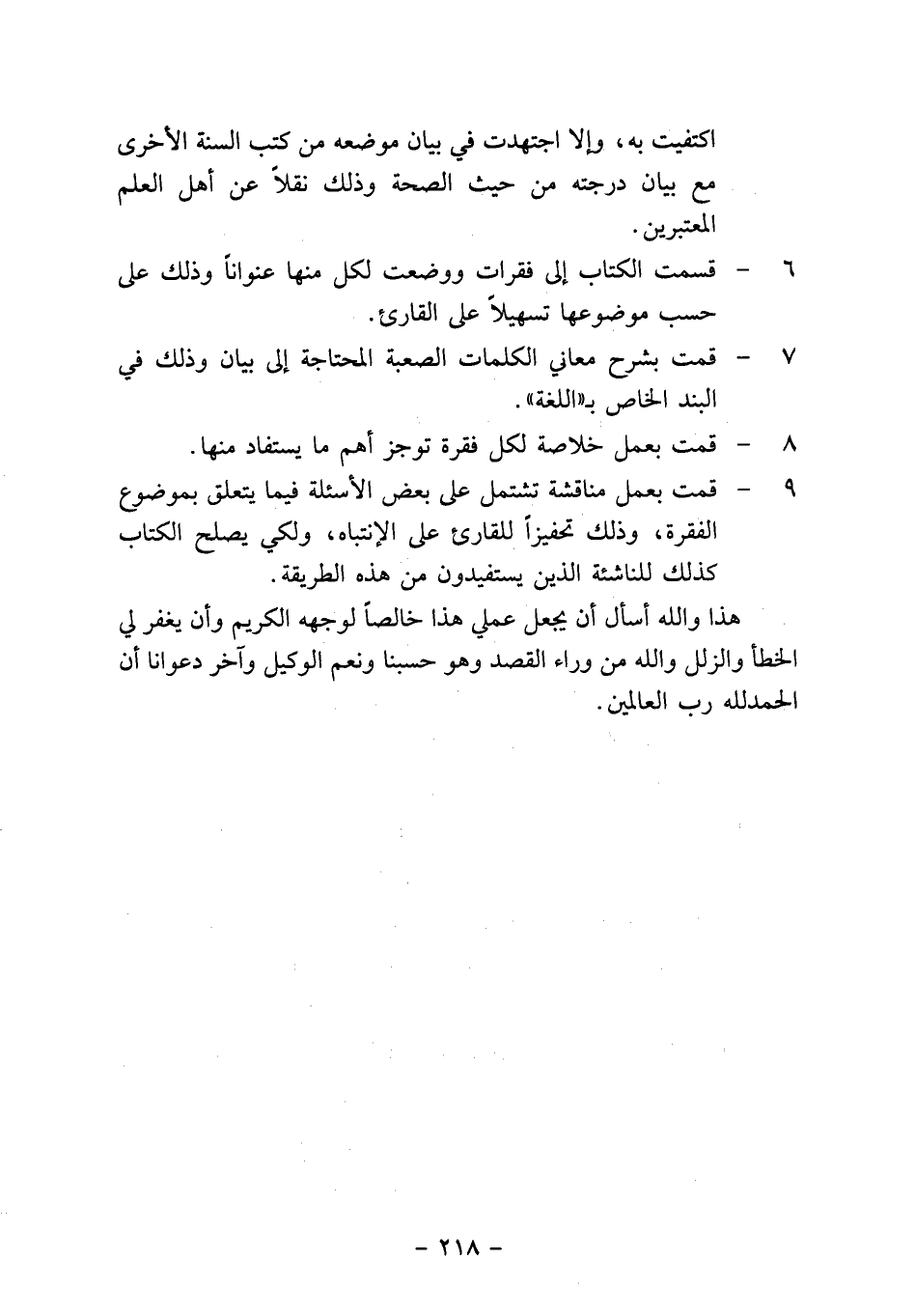9- قمت بعمل مناقشة تشتمل على بعض الأسئلة فيما يتعلق بموضوع الفقرة، وذلك تحفيزاً للقارئ على الانتباه، ولكي يصلح الكتاب كذلك للناشئة الذين يستفيدون من هذه الطريقة.