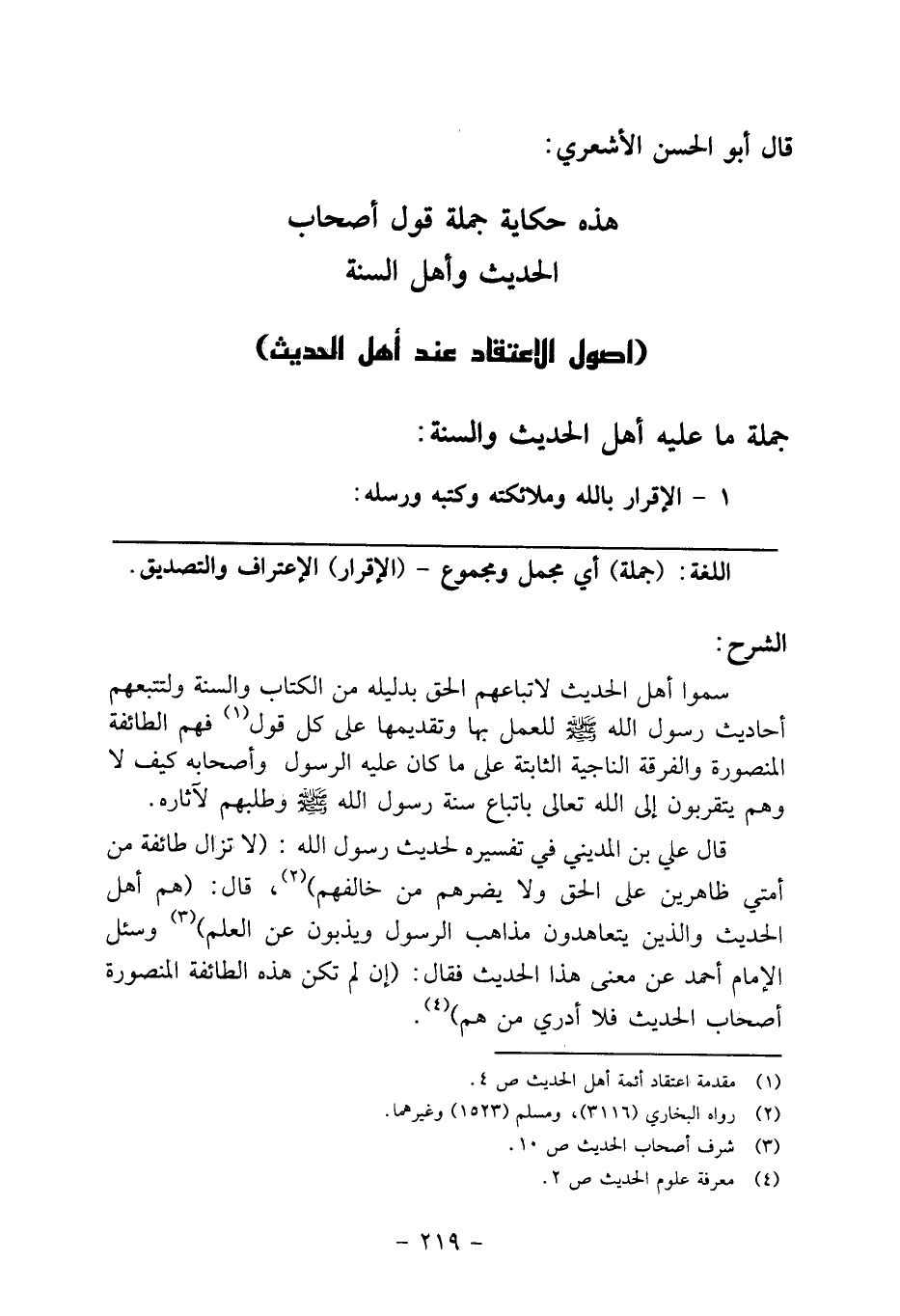 هذه حكاية جملة قول أصحاب الحديث وأهل السنة (أصول الاعتقاد عند أهل الحديث)