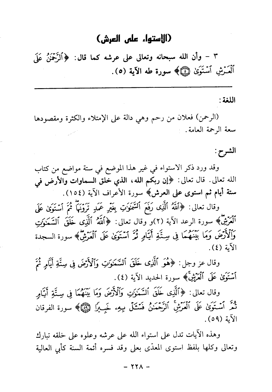 قال تعالى: {إِنَّ رَبَّكُمُ اللَّهُ الَّذِي خَلَقَ السَّمَاوَاتِ وَالْأَرْضَ فِي سِتَّةِ أَيَّامٍ ثُمَّ اسْتَوَى عَلَى الْعَرْشِ} سورة الأعراف الآية (54) .