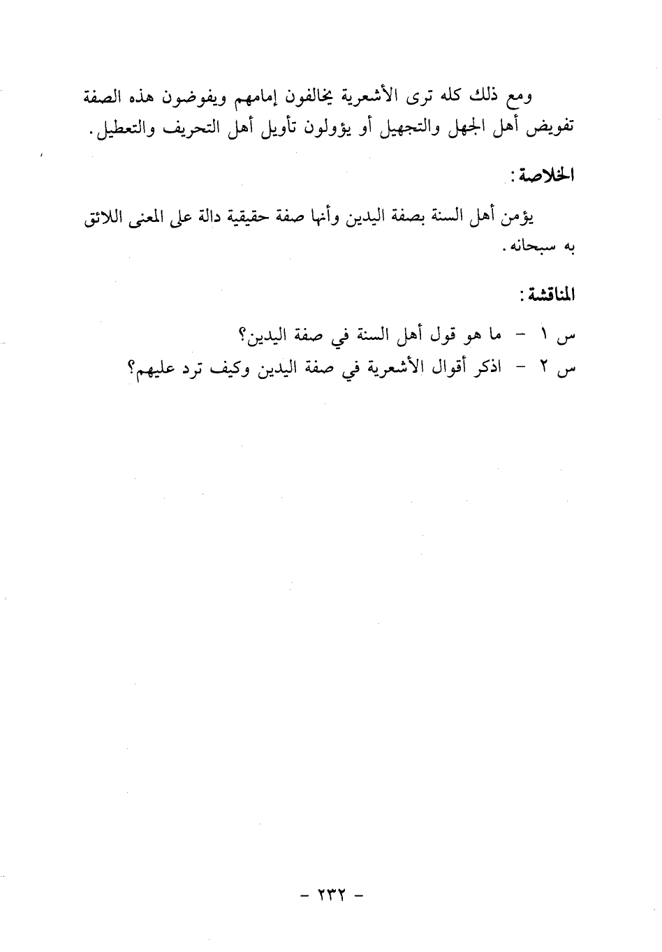 س 2- اذكر أقوال الأشعرية في صفة اليدين وكيف ترد عليهم؟