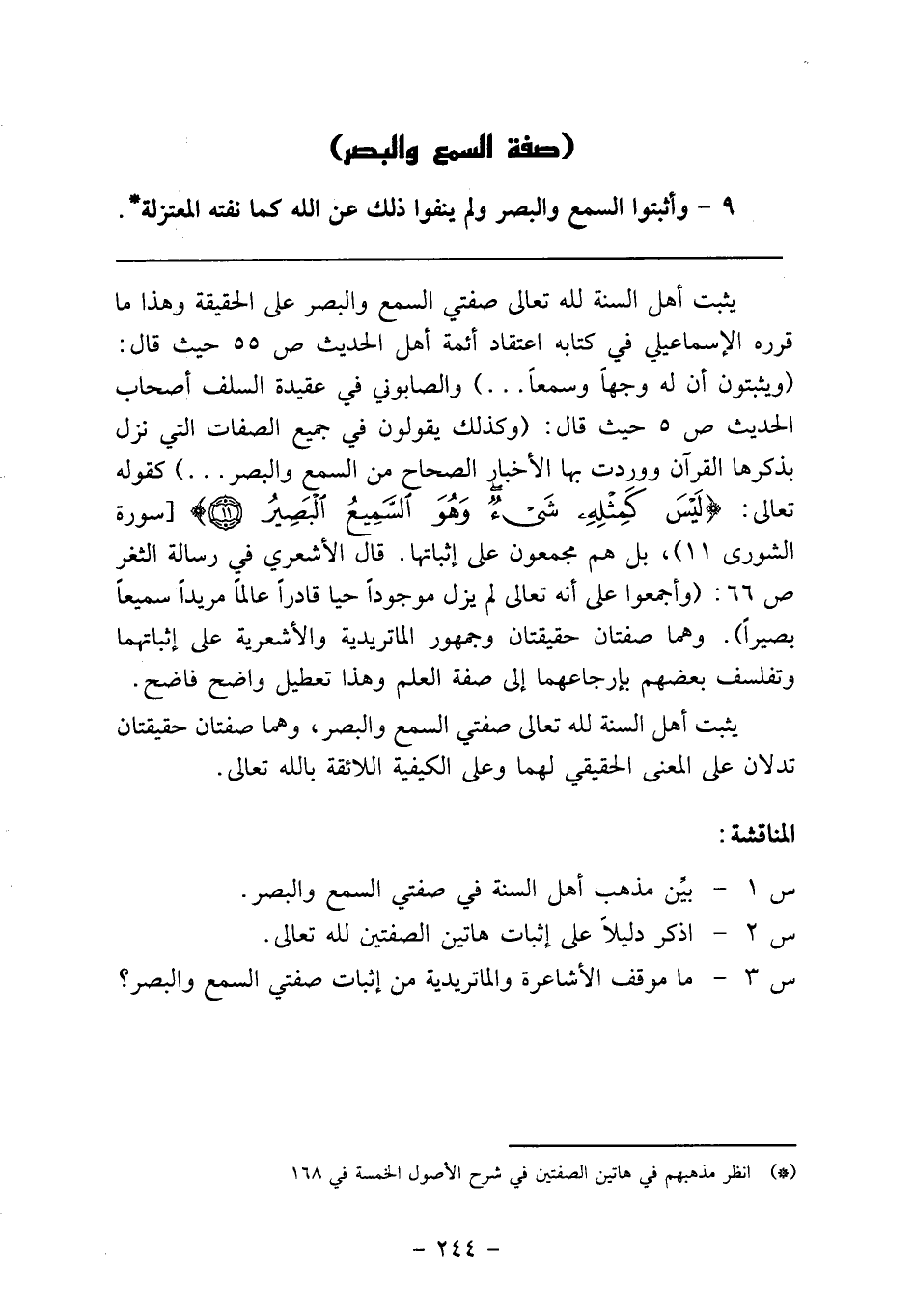 9- واثبتوا السمع والبصر ولم ينفوا ذلك عن الله كما نفته المعتزلة. 1
