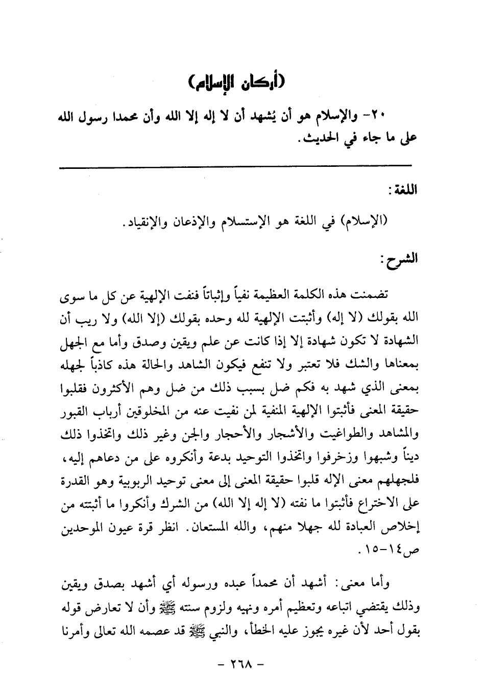 20- والإسلام هو أن يشهد أن لا إله إلا الله وأن محمداً رسول الله على ما جاء في الحديث.