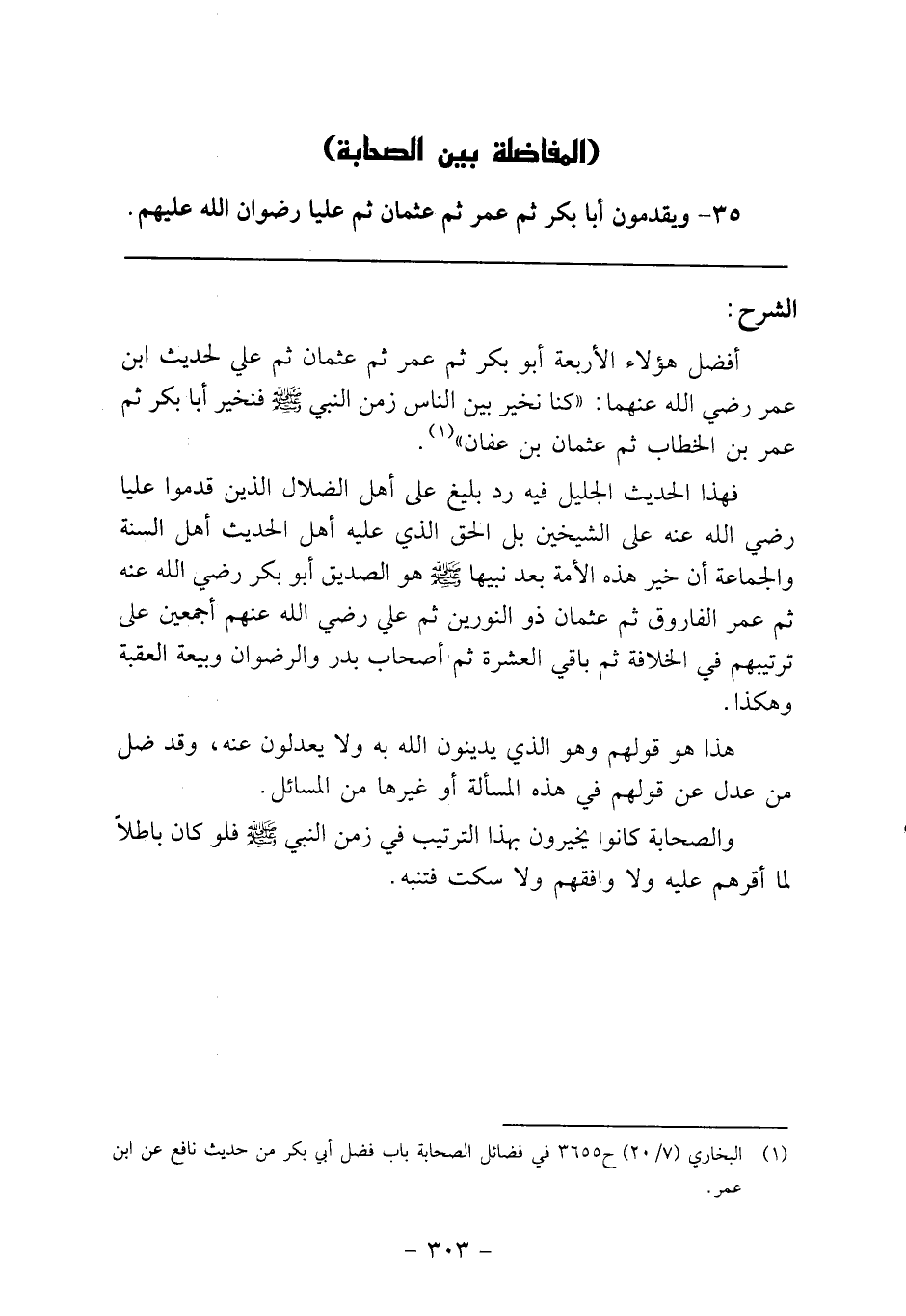 35 - ويقدمون أبا بكر ثم عمر ثم عثمان ثم علياً رضوان الله عليهم.