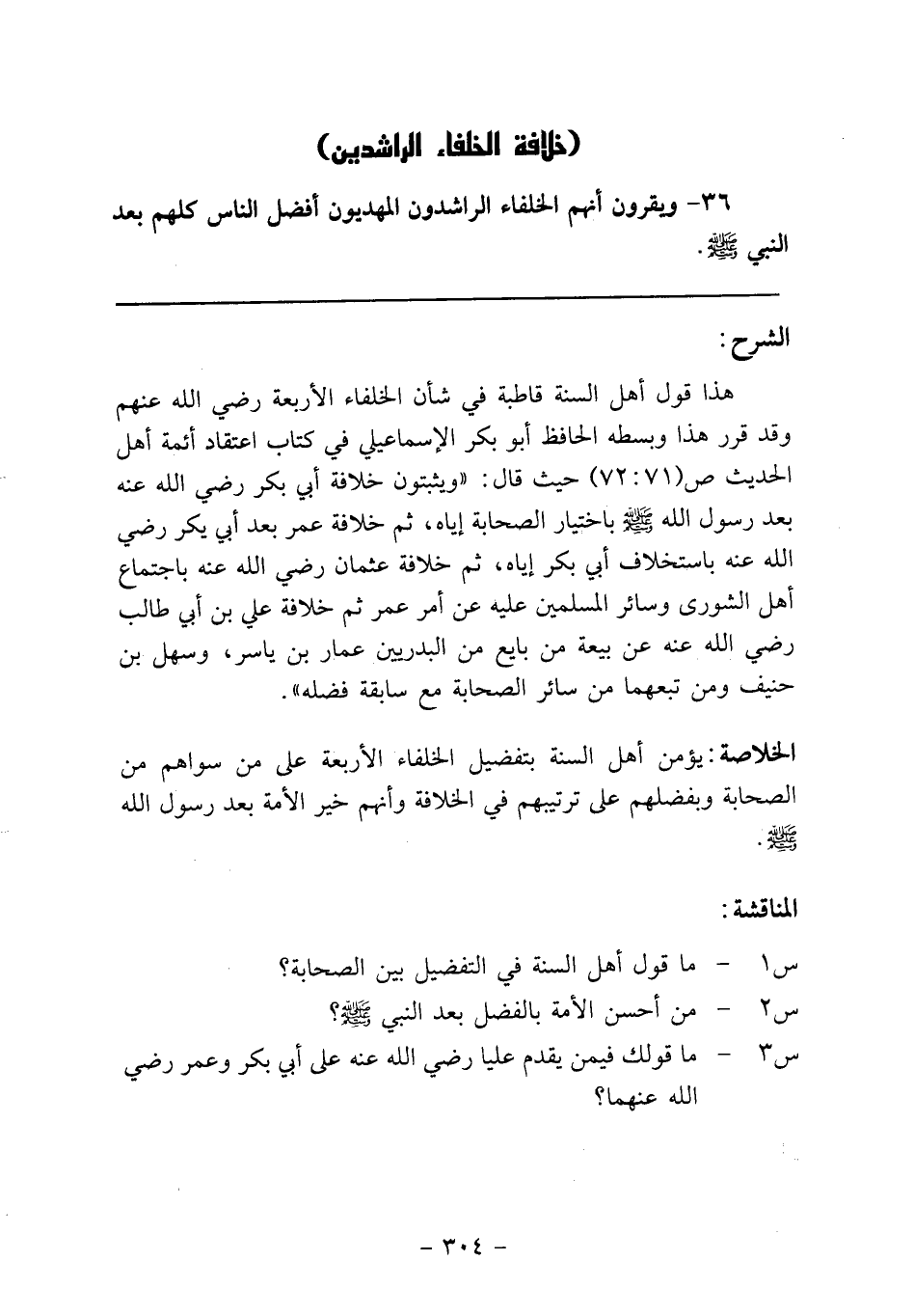 36 - ويقرون أنهم الخلفاء الراشدون المهديون أفضل الناس كلهم بعد النبي صلى الله عليه وسلم.