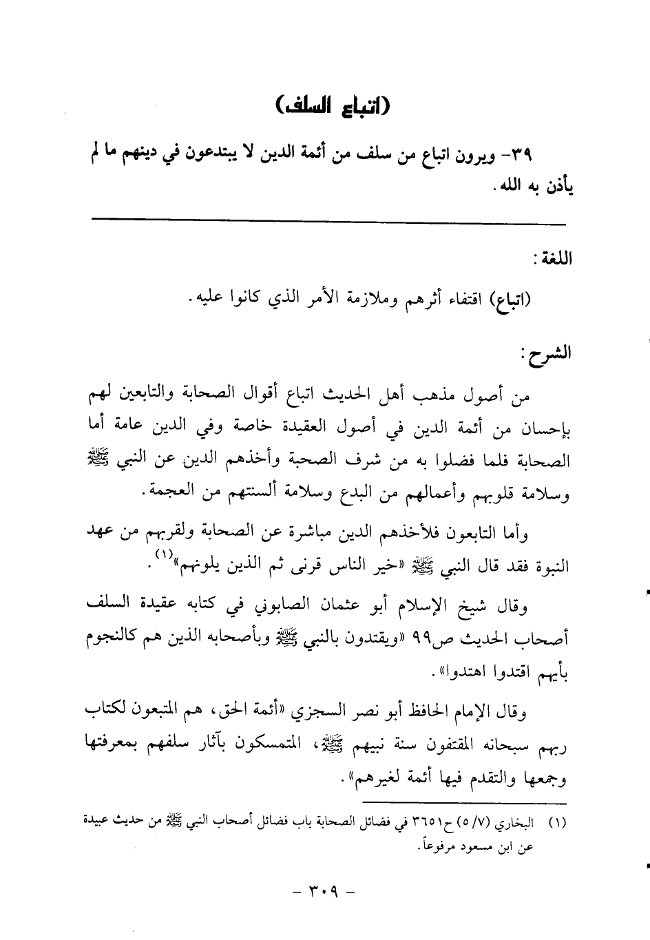 39 - ويرون إتباع من سلف من أئمة الدين لا يبتدعون في دينهم ما لم يأذن به الله.