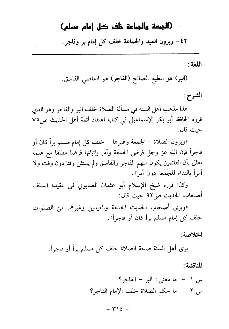 42 - ويرون العيد والجماعة خلف كل إمام بر وفاجر.