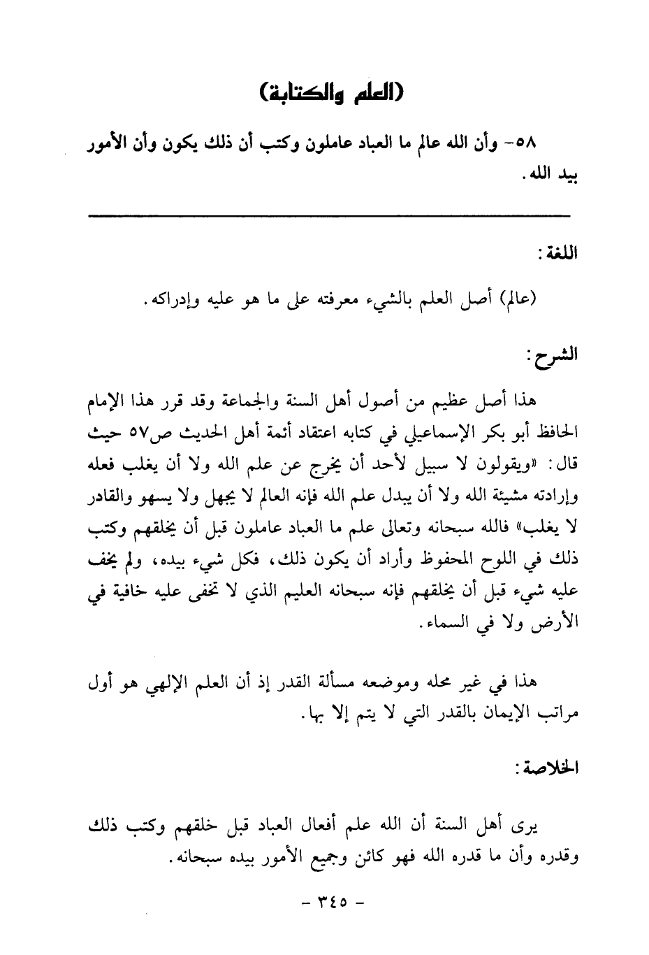 58 - وأن الله عالم ما العباد عاملون وكتب أن ذلك يكون وأن الأمور بيد الله.
