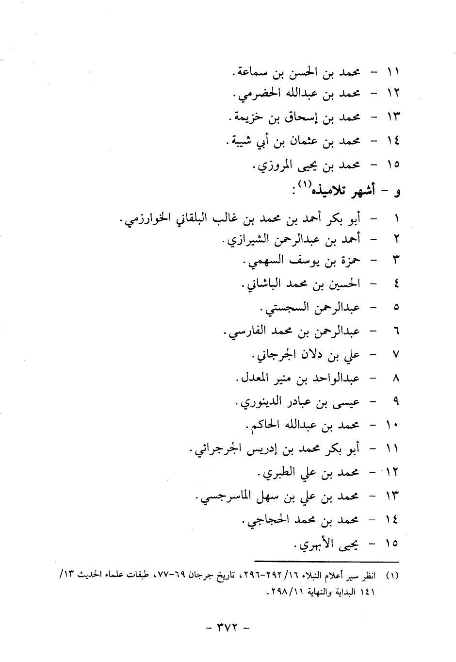 1 انظر سير أعلام النبلاء 16/ 292-296، تاريخ جرجان 69-77، طبقات علماء الحديث 13/141 البداية والنهاية 11/298.
