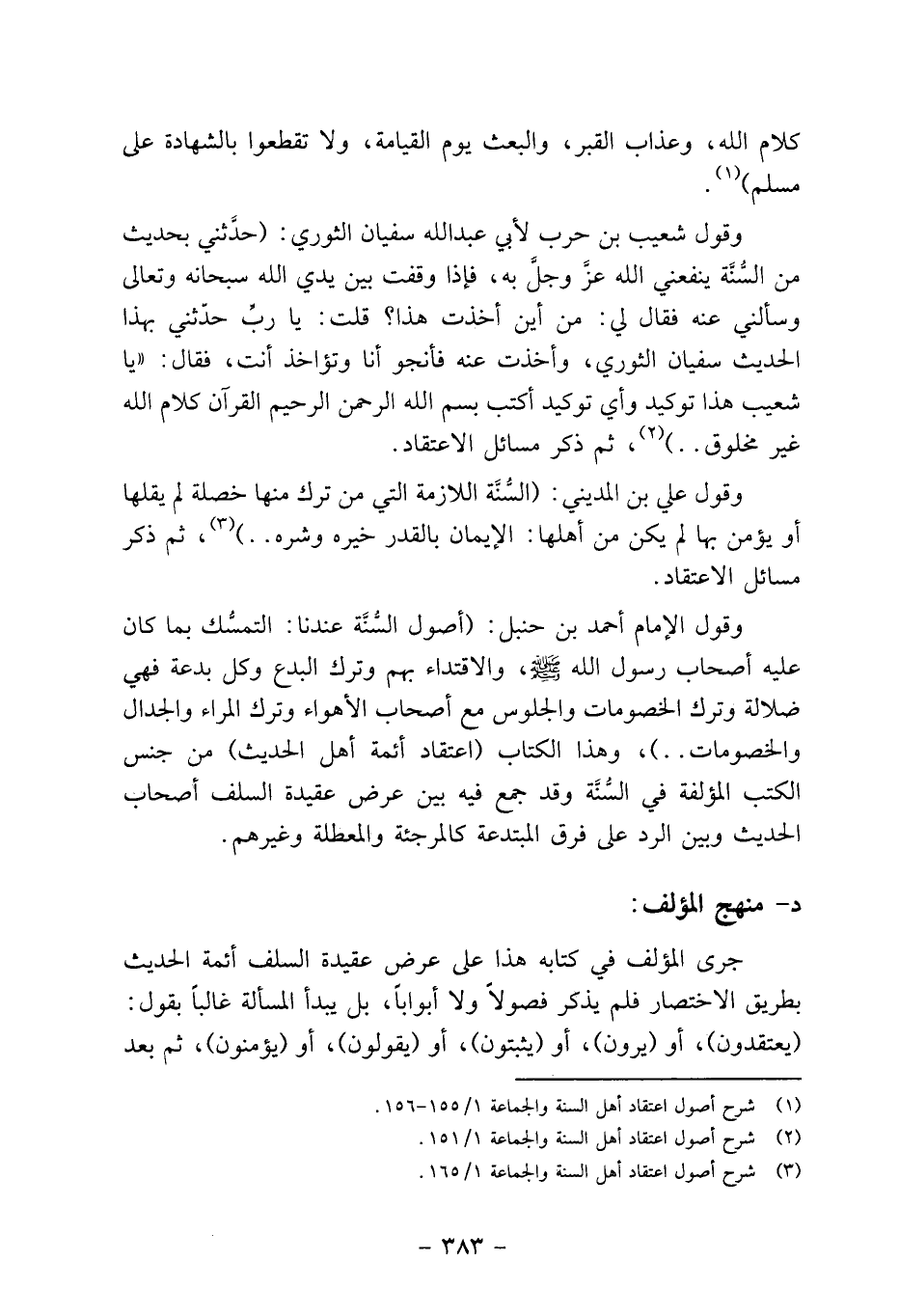 3 شرح أصول اعتقاد أهل السنة والجماعة 1/ 165.