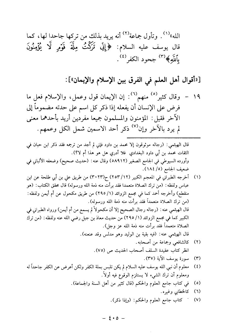 5 في كتاب جامع العلوم والحكم (قال كثير من أهل السنة والجماعة) .