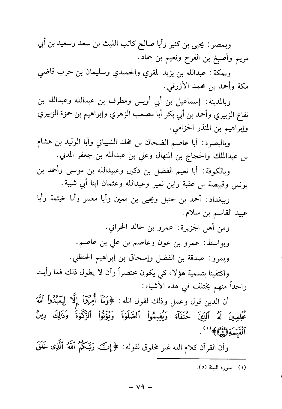 واكتفينا بتسمية هؤلاء كي يكون مختصراً وأن لا يطول ذلك فما رأيت واحداً منهم يختلف في هذه الأشياء: