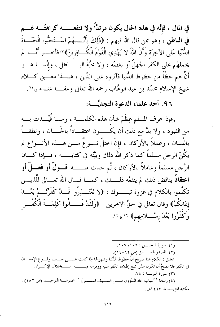 (¬4) رسالة " أسباب نجاة السَّؤول من السيف المسلول ". مجموعة التوحيد (ص 182) . مكتبة المؤيد ط 1413هـ.