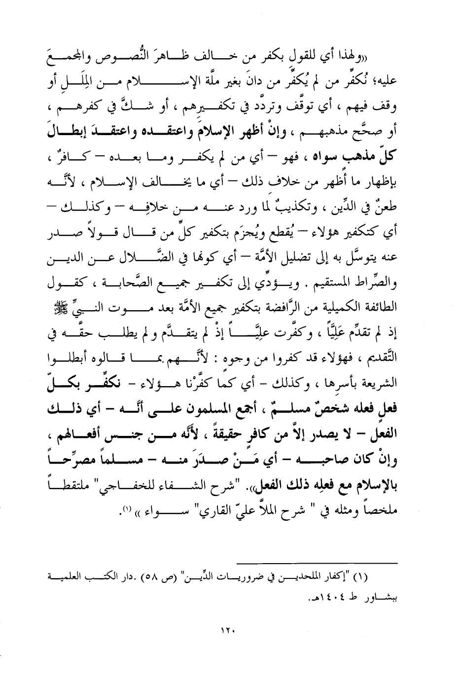 (¬1) "إكفار الملحدين في ضروريات الدِّين" (ص 58) .دار الكتب العلمية ببشاور ط 1404هـ.