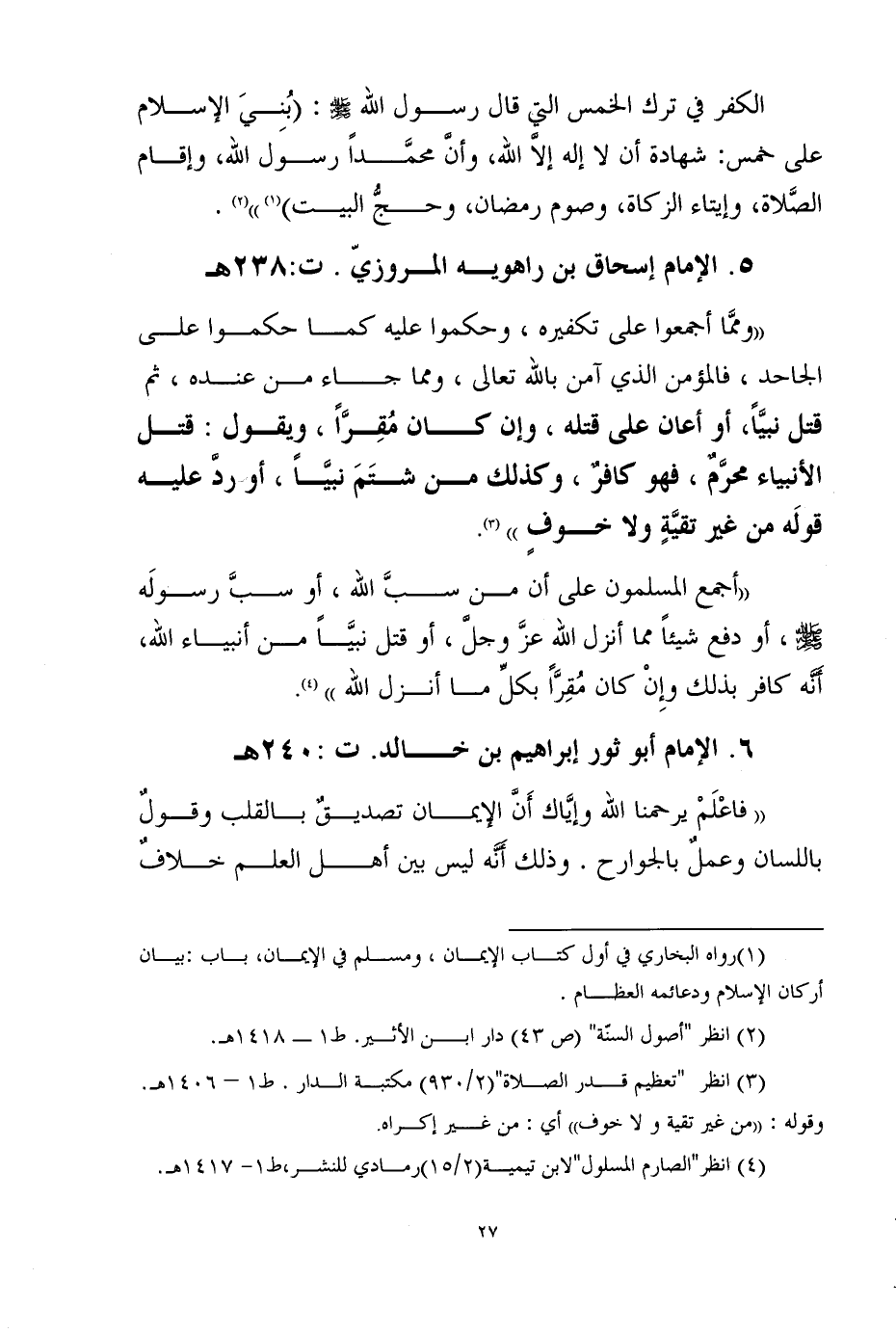 (¬2) انظر "أصول السنّة" (ص 43) دار ابن الأثير. ط1 ـ 1418هـ.