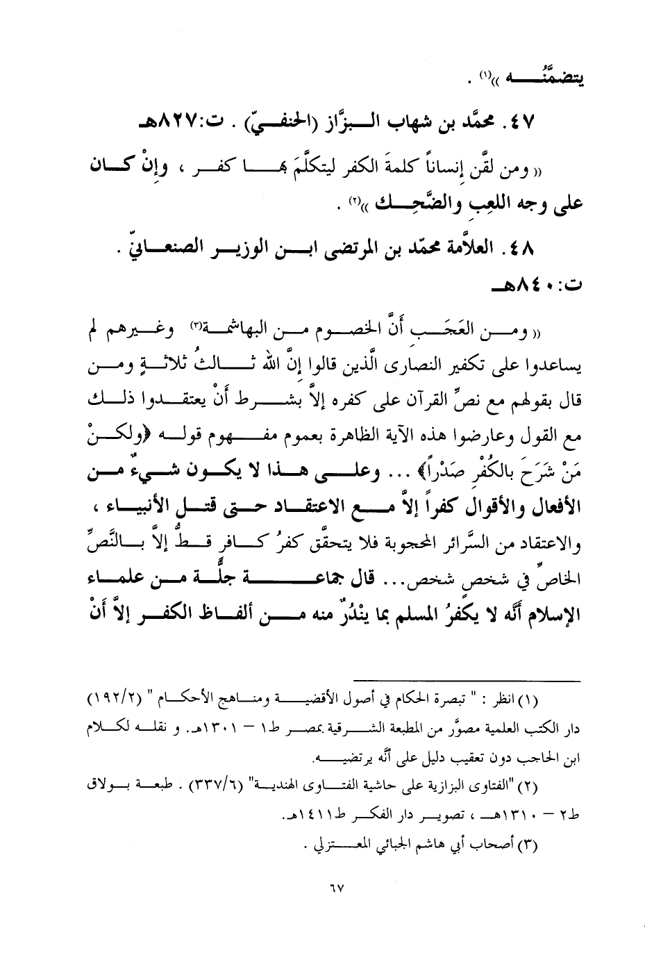 (¬2) "الفتاوى البزازية على حاشية الفتاوى الهندية" (6/337) . طبعة بولاق ط2 - 1310هـ، تصوير دار الفكر ط1411هـ.