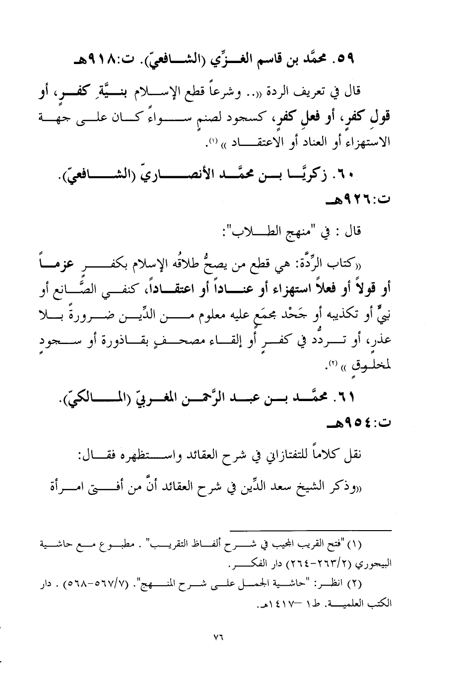 (¬2) انظر: "حاشية الجمل على شرح المنهج". (7/567-568) . دار الكتب العلمية. ط1 -1417هـ.