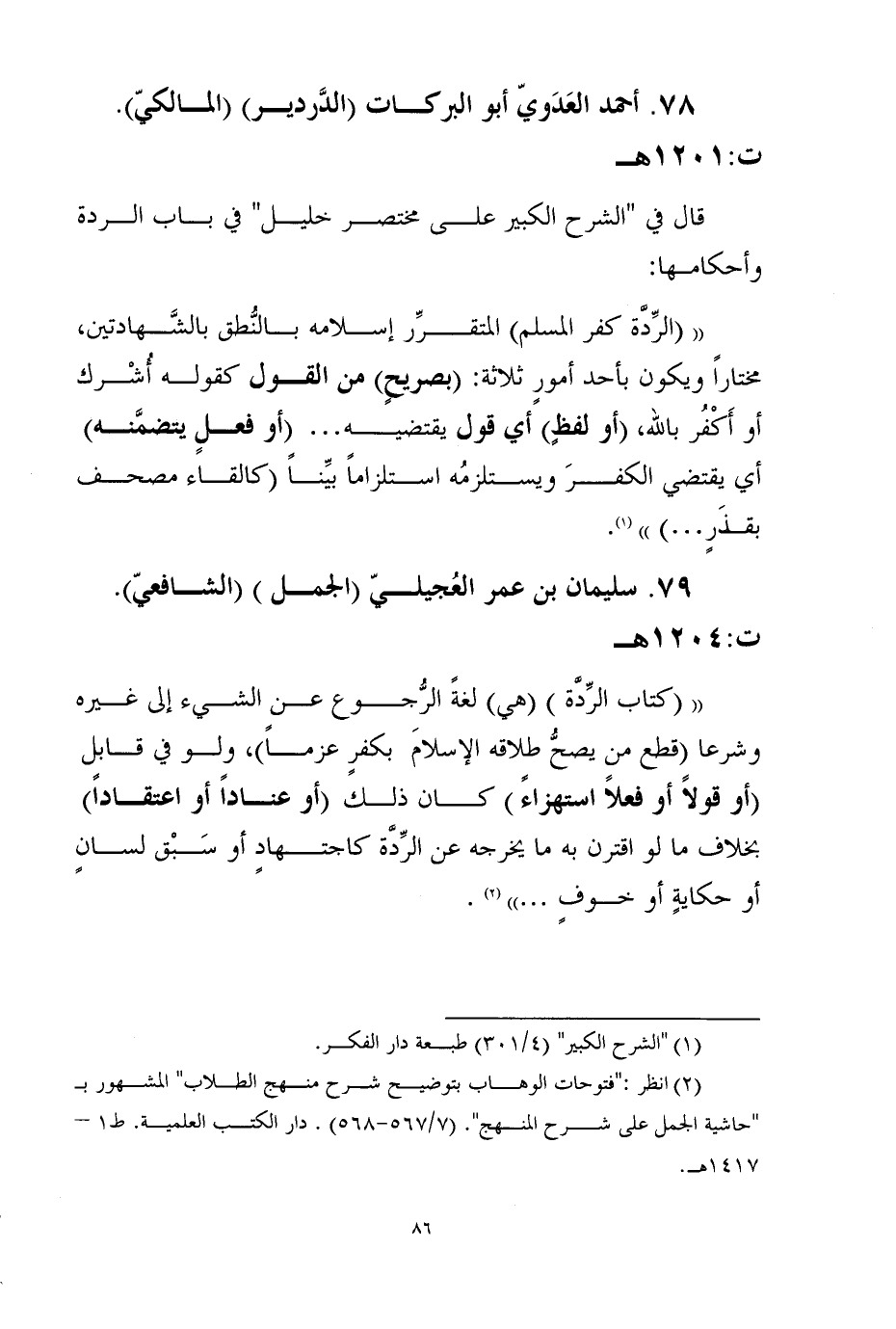 (¬2) انظر:"فتوحات الوهاب بتوضيح شرح منهج الطلاب" المشهور بـ "حاشية الجمل على شرح المنهج". (7/567-568) . دار الكتب العلمية. ط1 -1417هـ.