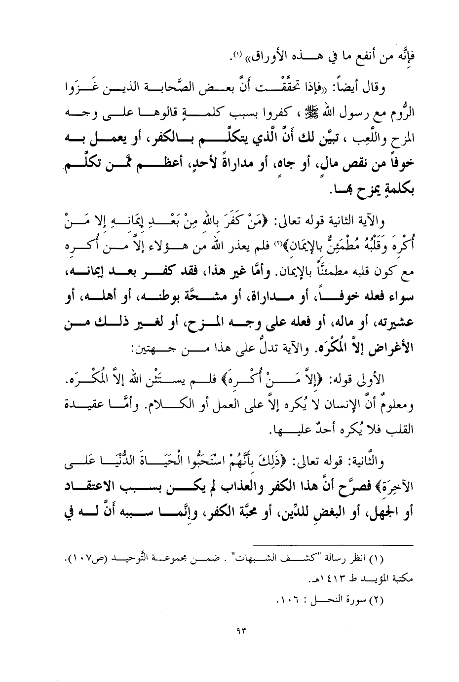 (¬1) انظر رسالة "كشف الشبهات". ضمن مجموعة التَّوحيد (ص107) . مكتبة المؤيد ط 1413هـ.