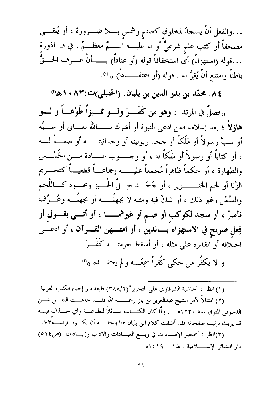 (¬2) امتثالاً لأمر الشيخ عبد العزيز بن باز رحمه الله فقد حذفت النقل عن الدسوقي المتوفي سنة1230هـ. ولما كان الكتاب ماثلاً للطباعة وأي حذفٍ فيه قد يربك صفحاته فقد أضفت كلام ابن بلبان هنا، وحقه أن يكون ترتيبه 73.