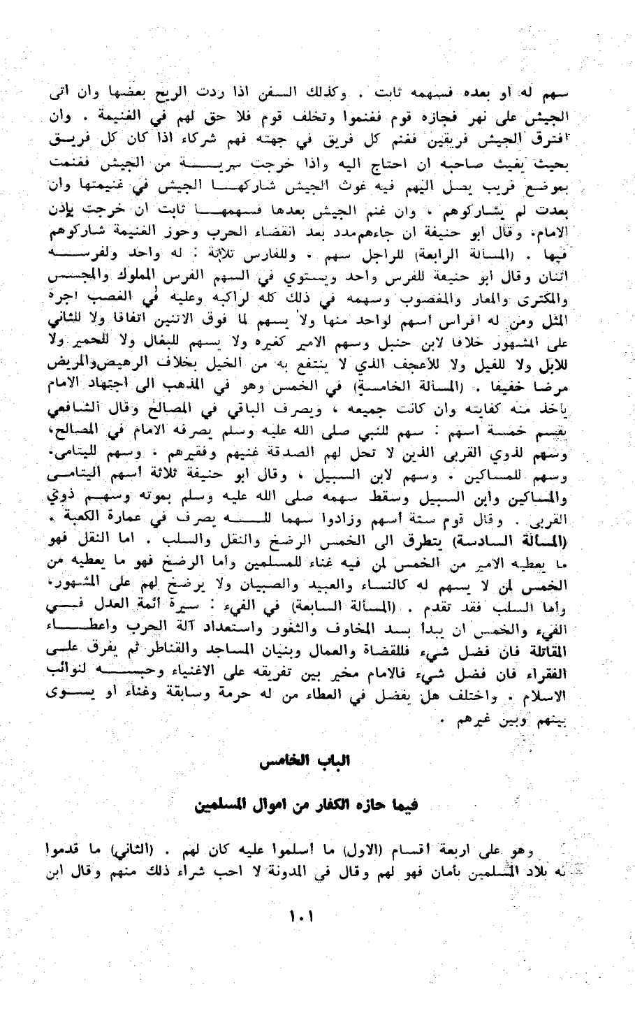 الْبَاب الْخَامِس فِيمَا حازه الْكفَّار من أَمْوَال الْمُسلمين