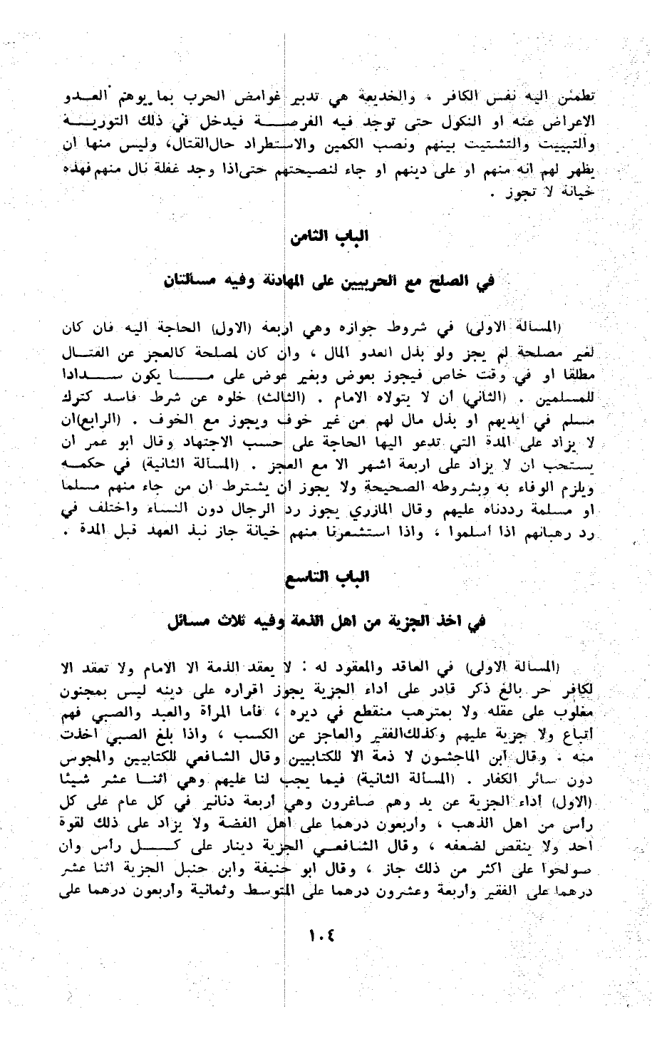 الْبَاب التَّاسِع فِي أَخذ الْجِزْيَة من أهل الذِّمَّة وَفِيه ثَلَاث مسَائِل